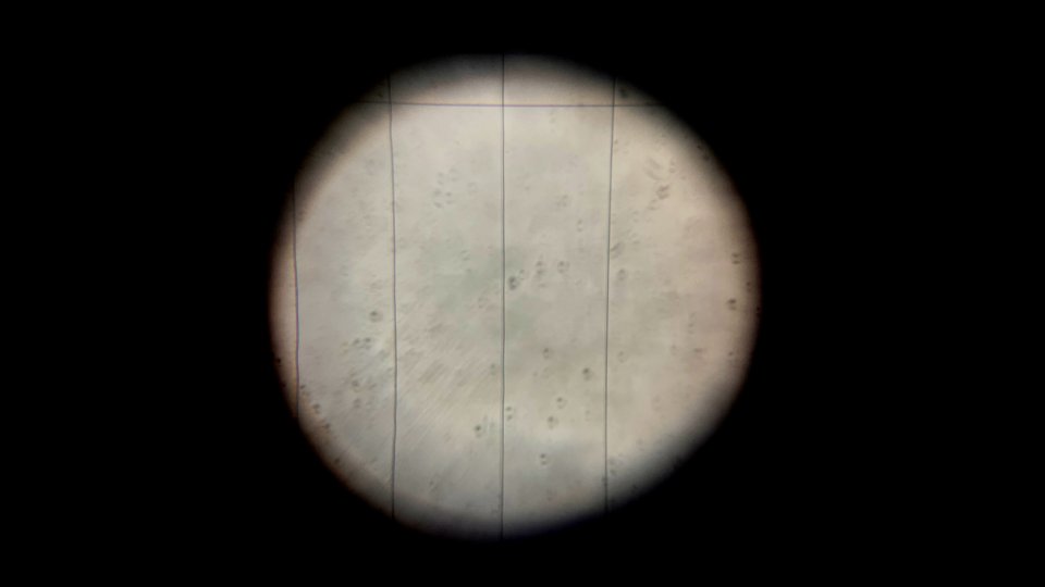 iPhoneで撮影したという接眼レンズの図、測定用のラインが設けられています。