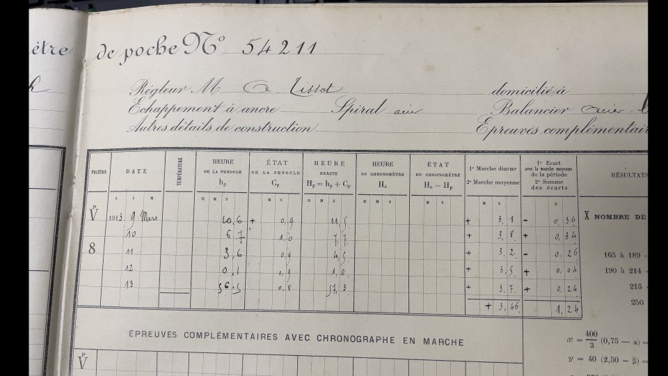 全個体がブザンソン天文台のクロノメーター検定を通過しており、その証明として検定証(下のカード)が付属します。