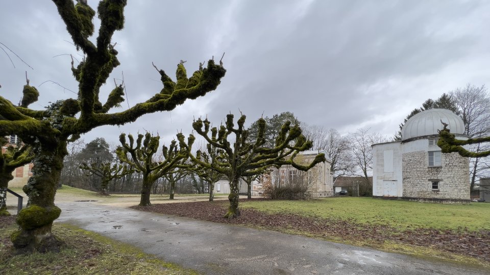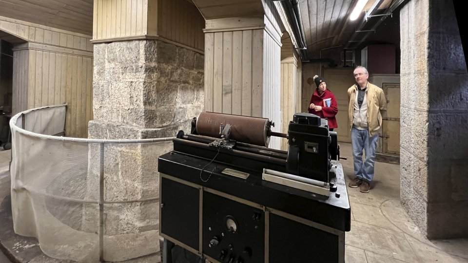 子午線儀、気になったのは校正用のマーカーがだいぶ近い所にあること(ヌーシャテル天文台だと湖を挟んだ対岸と離れている)、これを浅岡氏に伺ったところカメラのコンバーターレンズのような仕組みで近くにフォーカスが合うようにする仕組みが窓の所に設けられているものの、理論的に正しいのはヌーシャテルの方法ではないか、とのこと。