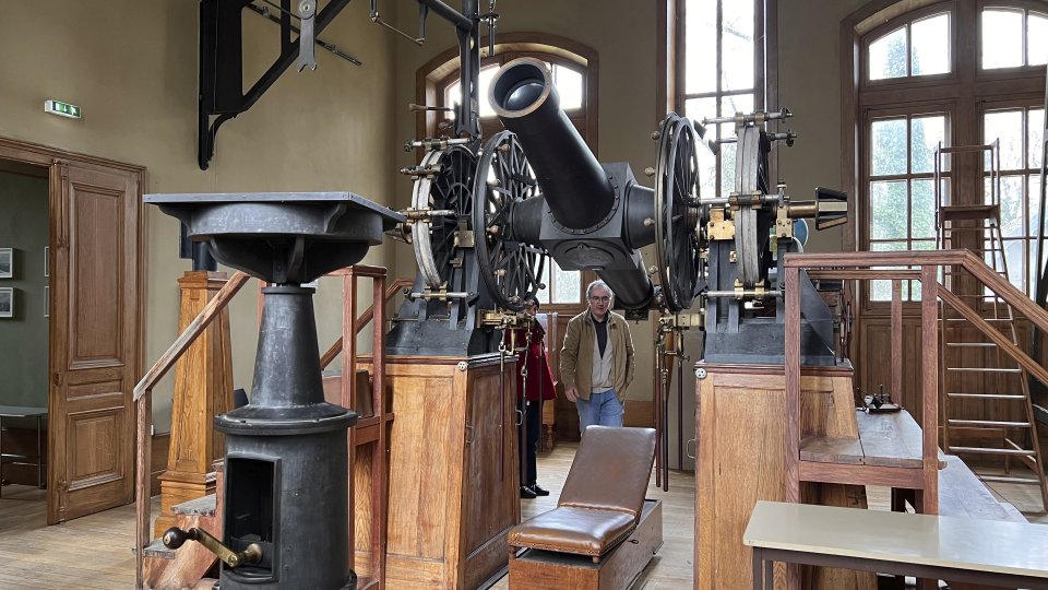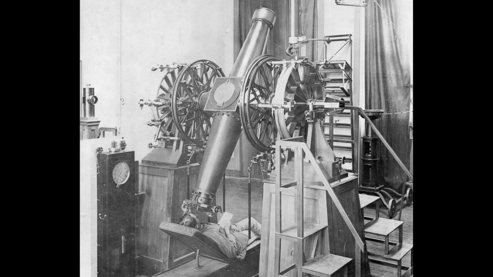 「天文台といえば」なドーム状の意匠ですが、時刻を求めるのはこの赤道儀でではなく…