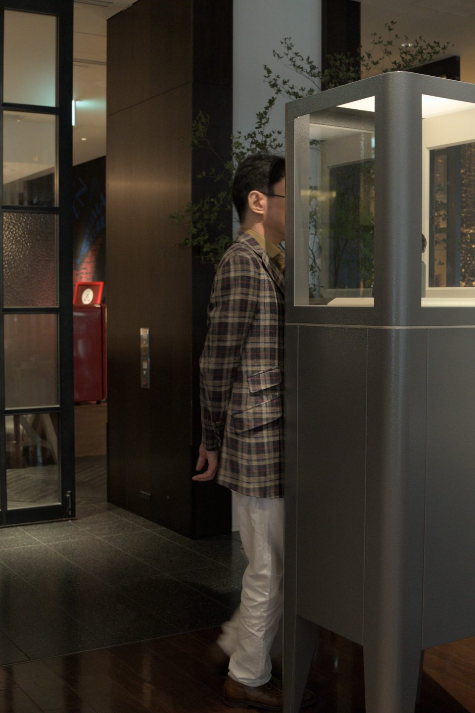 自ら最終チェックを行う浅岡氏、このケースのこだわりポイントとして、「理想的な面光源」を実現するためと「光源からの距離を離す」ため、あえてケース内に発光するライトは設けず、ケース上部に設けられた光拡散用の樹脂素材が外部の光を取り込み、均等に発光する面光源として機能する、という逆転の発想で作られていると語ってくれました。