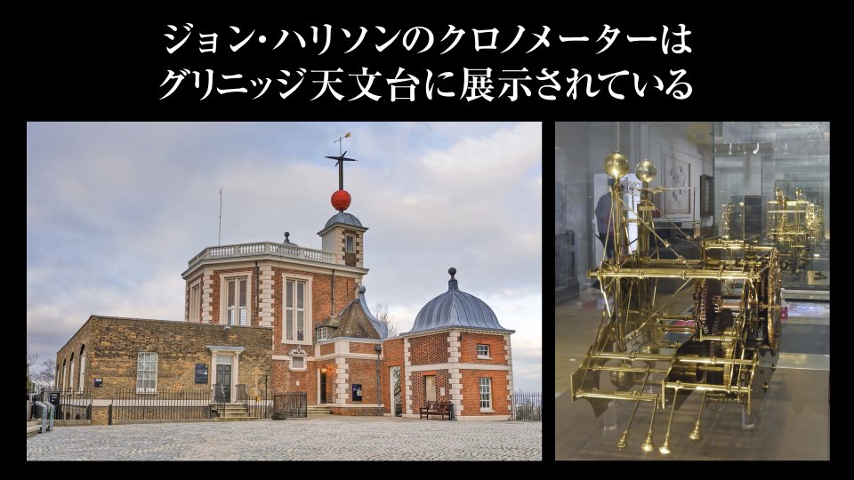 クロノメーターの歴史に欠かせない「経度法」の話題から、大航海時代を経て各地に植民地を持っていたイギリス帝国は植民地間の安全な航海のために星の観測と時刻から緯度・経度を算出する天測航法の技術を推進していましたが、正確な経度の推定には正確な時刻が必要であり、一度出港したら航海中は修正することもできないため「正確な時計」というものが高い価値を持っていました。