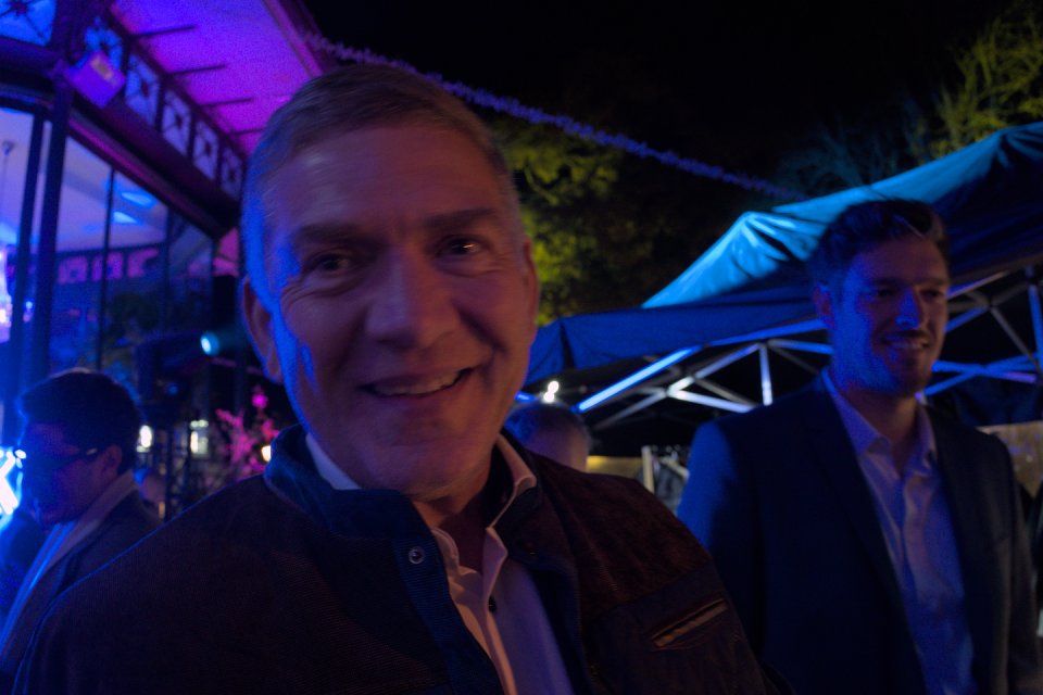 10/180パネルの前でゲストと共に記念撮影を行うザビエル。