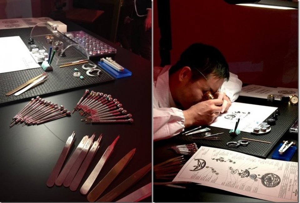 光り輝く道具で、最新のムーブメントを組み立てを見せて下さいました!