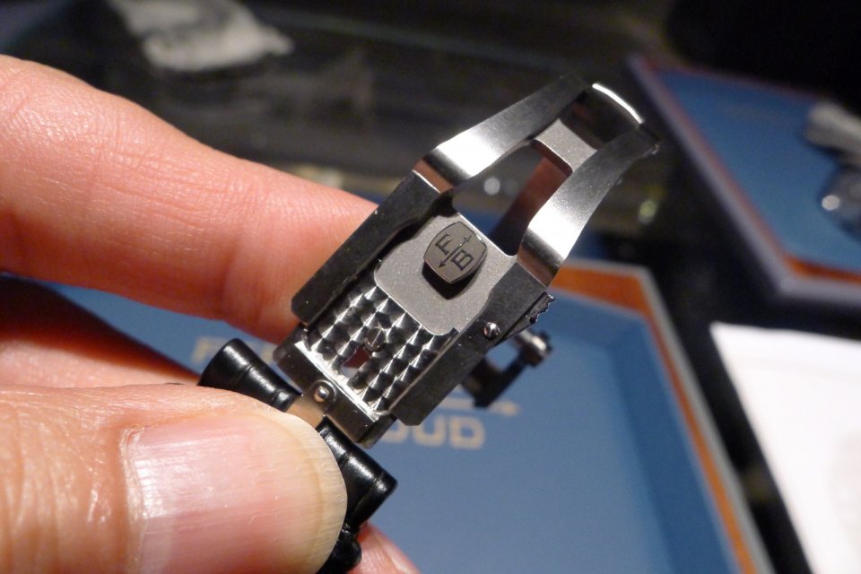 Dバックル部分ですが、このFBロゴの部分は、ダークロジウム加工。しかし、それだけではなく。。。