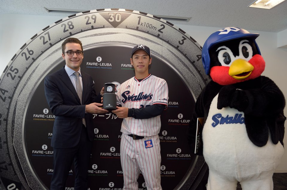 スイスの高級時計ブランド、ファーブル・ルーバは28日、ヤクルトと小川泰弘投手のスポンサーに就任したことを発表、神宮球場内でプレス発表を行った。