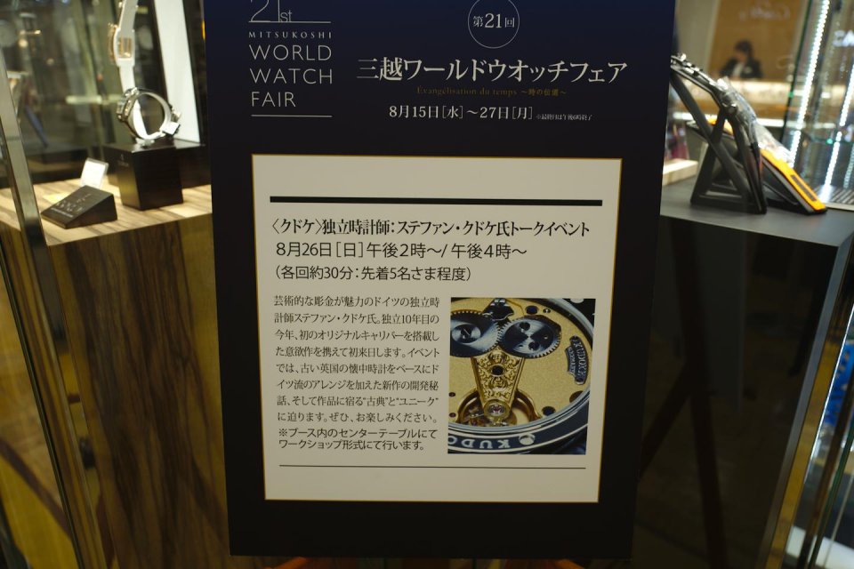 By : CC Fanいよいよ今日(8月27日)までとなった、三越ワールドウォッチフェア、今回は初のオリジナルキャリバーを携えて初来日したクドケ(Kudoke)の時計師、ステファン・クドケ(Stefan Kudoke)氏のトークイベントのレポートをお送りします。