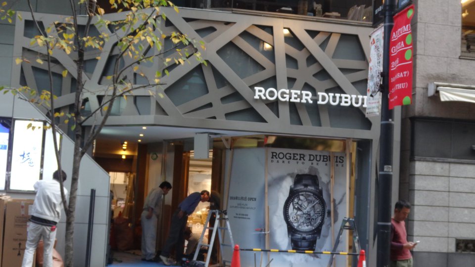 以前に個人ブロクに書いたウワサ通り、ロジェ・デュブイ・ブティックが絶賛内装中だった。
