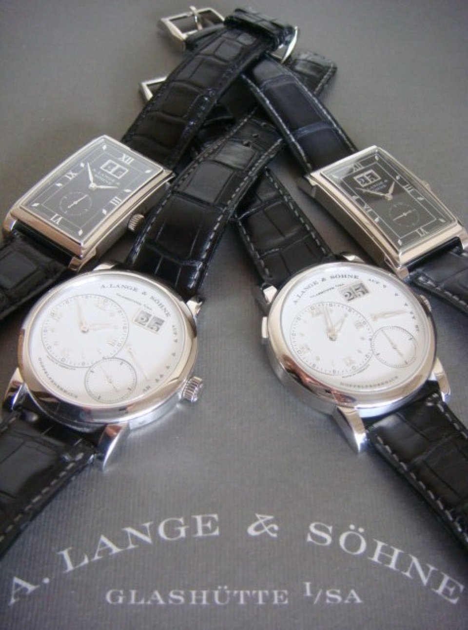 チェリーニ限定と言えば、いまから15年前の2001年、チェリーニの25周年を記念して発表されたプラチナ・ケース+ホワイト・ダイヤルのランゲ1が懐かしい・・・・。