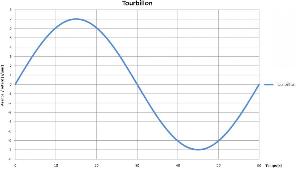 トゥールビヨンの時間[s]-日差[s/day]のグラフ (Rudis Sylva資料より引用)