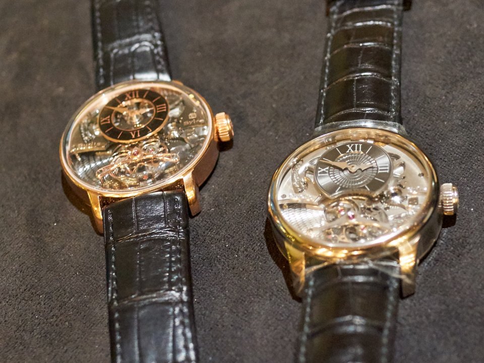 どちらのモデルもムーブメント地板に手作業で彫られたギロッシェは極めてシャープで光をキラキラと反射します。