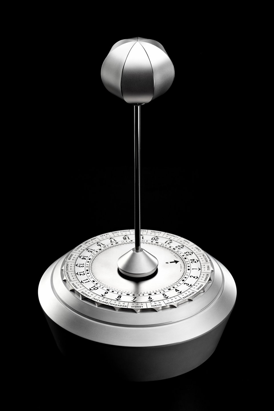 鉢植えを模したケースに備えられた、時刻表示ディスクもチタンで作られ、24時間のルイ・コティエ様式のワールドタイムをとなっています。