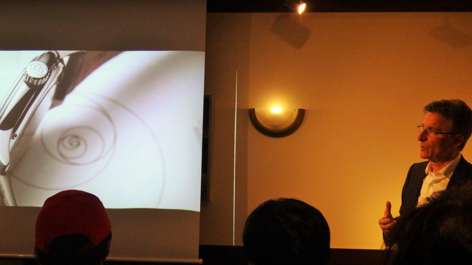 短いビデオがエンドレスで流れる会場。日本法人CEOの短い挨拶の後、"時計の巨匠”は定刻に現れた。