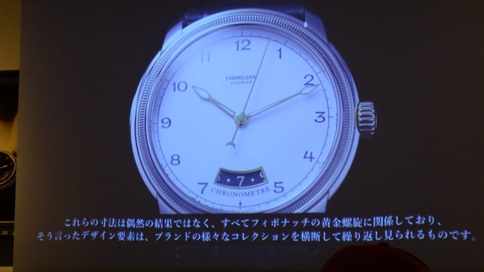 この日のプレゼンテーションの印象を簡単にまとめるならば、ミシェル・パルミジャーニ氏の時計製作の哲学的なバックボーンとなっている建築学的なエレメントや、自然の黄金律を表すフィボナッチ数列に基づく構造デザインなど、御本人にとっては語るまでもないくらい当たり前のことが、実はあまり伝わっていないことを感じたため、メディア向けに行われたレクチャーというイメージで、時計の新作プレゼンと言うよりも、学問的発表に近い印象とともに、時計製作を中心とするスイスの物づくりを愛し、その美点を保持・継承する必要性を憂うマイスターの純粋な訴えでもあったように感じた。