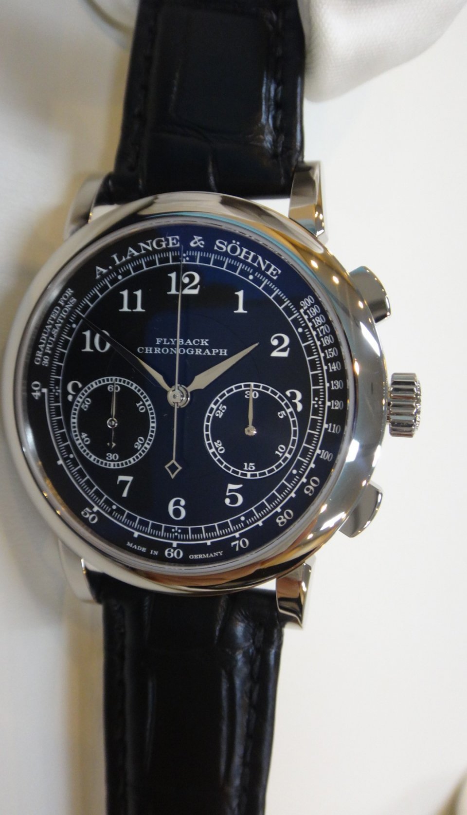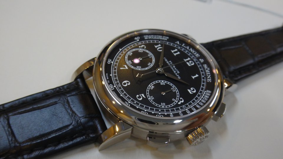 会場には、発表されたばかりの1815クロノ黒文字盤の姿も!