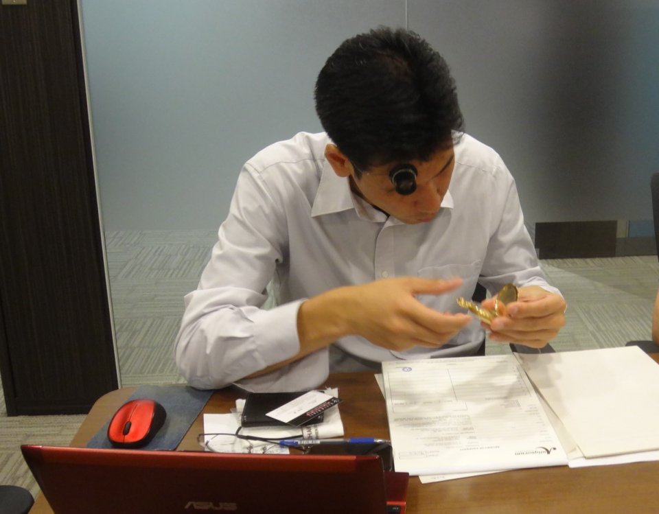 外観、キズ、文字盤の状態、機械などをチェックしたあと、過去のオークションデータを検索して、だいたいの金額を(今回はドル・ベースで)、提示してくれる(幾らから幾らの間と、幅を持って提示されることもある)。