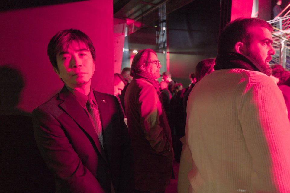 イベント後、リリースなどで使われる「集合写真」を撮影するために関係者が壇上に集まります。