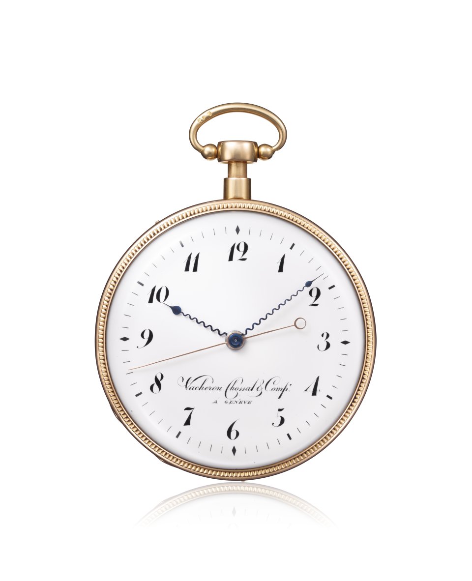「レ・キャビノティエ」の新作に搭載された複雑機構は、ヴァシュロン・コンスタンタンの中心的価値観のひとつである、時計製造技術の世代を超えた継承を体現しています。1819年にメゾンが製作した独立式デッドビートセコンドとクォーター・リピーターを備えた懐中時計は、この種の時計の先駆けとなるものでした。デッドビートセコンド機構は、時の微小な単位をより正確に計測するため、18世紀後半にさまざまな時計メーカーによって開発されました。この機構は独自の輪列を持つ独立したメカニズムとして設計され、通常の計時機能とは別に秒針を停止・再開させることができるため、クロノグラフの前身ともみなされています。