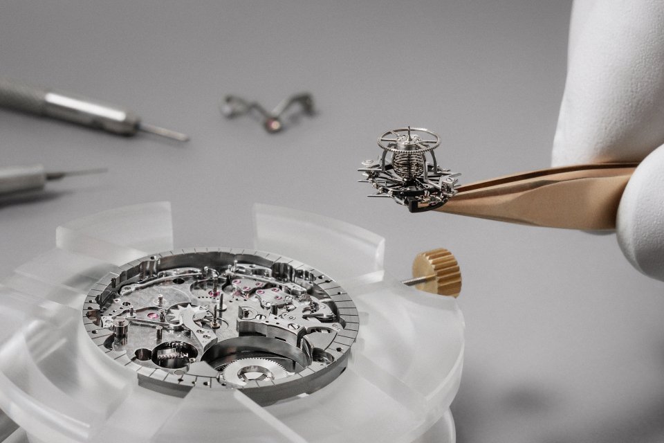 「レ・キャビノティエ・テンポリス・デュオ・グランドコンプリケーション・オープンフェイス」を手掛けた時計師は、等時性をさらに向上させるため球体ヒゲゼンマイを採用した新たなムーブメントを開発し、これにより、オープンワークのダイヤルからムーブメントの美しさと複雑性を堪能できる、唯一無二のタイムピースを完成させました