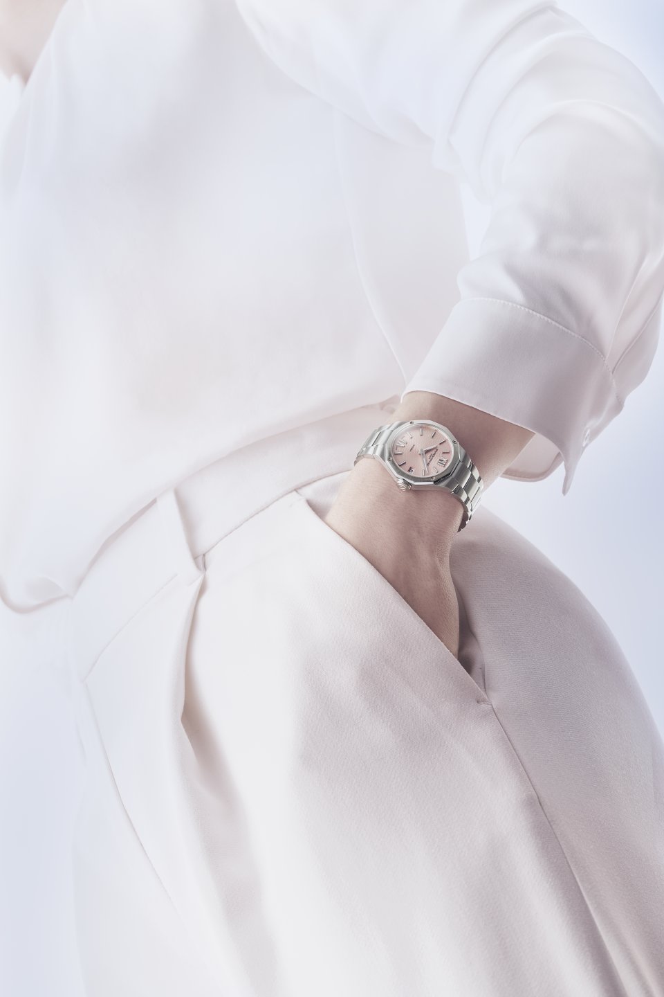 リビエラM0A10812のダイヤルは甘いキャンディを連想させるローズピンク。賑やかな時間、柔らかなくつろぎの時間をもたらしてくれます。