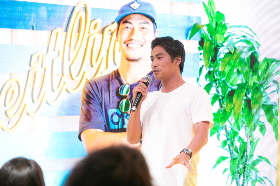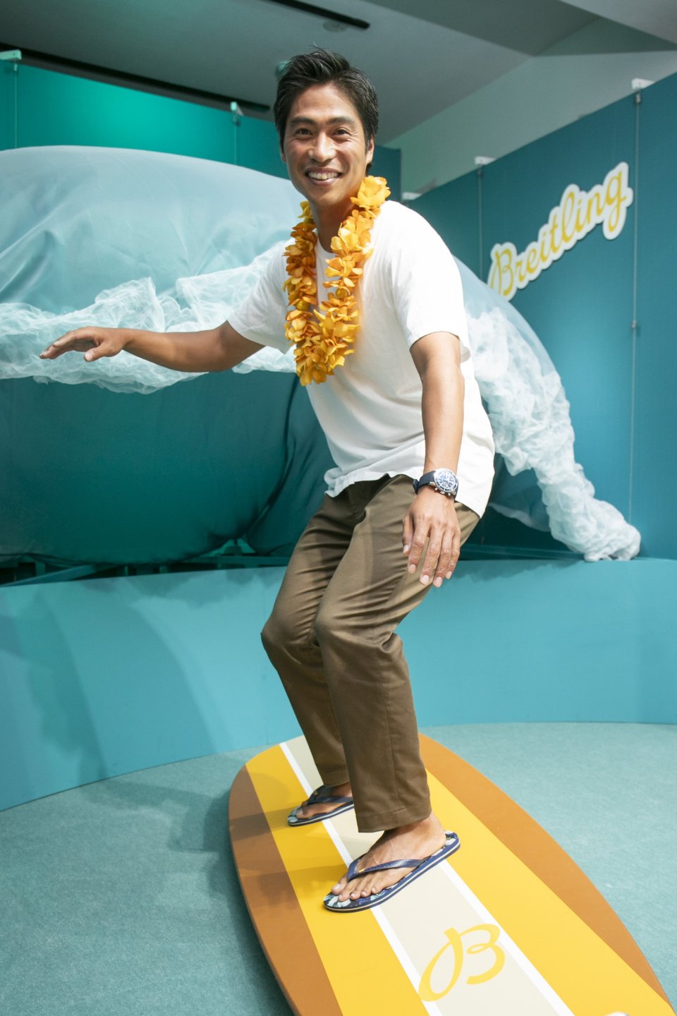 トークセッションのゲストにお迎えしたのは、プロサーファーの加藤嵐選手。日頃よりプライベートから競技中にいたるまでブライトリングを愛用している加藤選手に、ブライトリングの時計がスタイリッシュであるばかりでなく、サーフィン競技中の時間管理に有用であるというお話や、新スーパーオーシャン ヘリテージの印象などを語っていただきました。