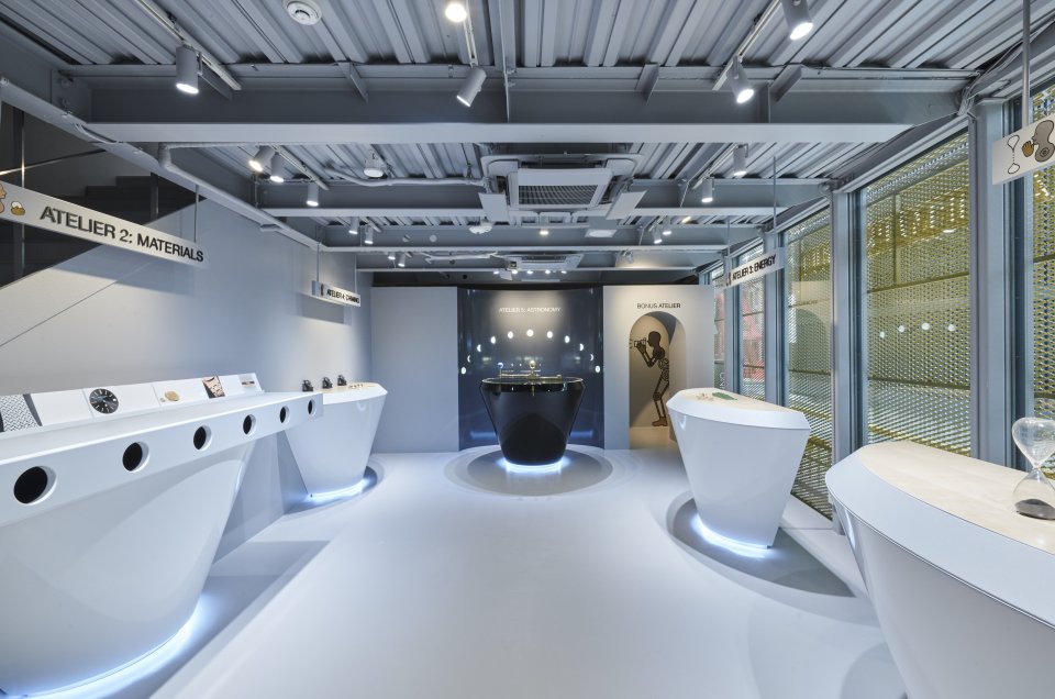施設は2つのフロアで構成され、1階のステージ1では、「時間」「素材」「機構」「音」「天体」をテーマにした5つのゲームを通して、機械式時計に関する知識を深め、ブランドの歴史や職人技に関する主要な特徴を学ぶことができます。