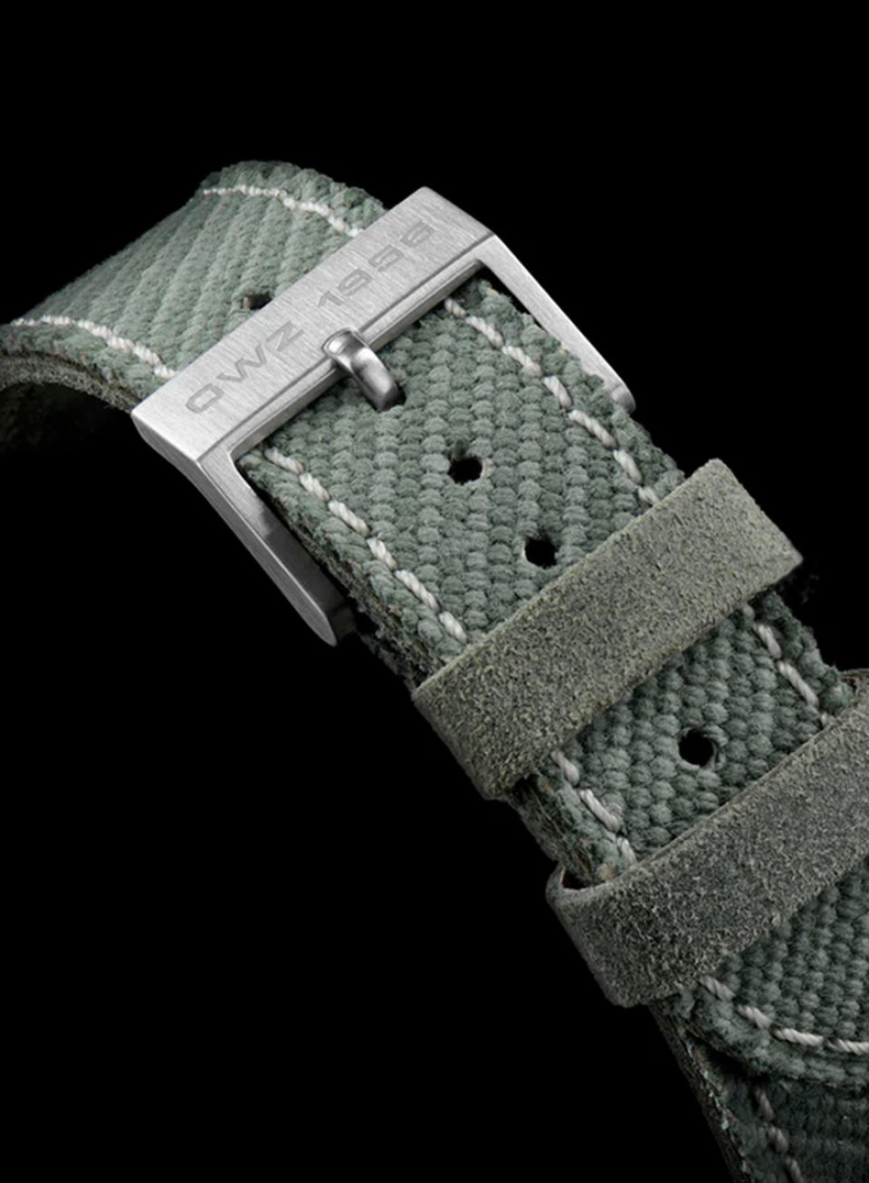 O & W M-110 ASには、ミリタリーグリーンの二重織りファブリックストラップが付属しています。このストラップはスイス陸軍のミルスペック(軍用規格)に適応した二重織りヘンプから作られています。この非常に耐久性の高い素材は、コットンよりも弾力性があり、軽量です。もともとはスイスアーミーのバックパックなど、さまざまな軍用製品に使用されることを目的としていました。この頑丈なツートンカラーの生地は、裏地にイタリア製ソフトレザーを使用しており、手縫い仕上げの快適性と高級感はスーツなどのドレスアップスタイルにもマッチします。
