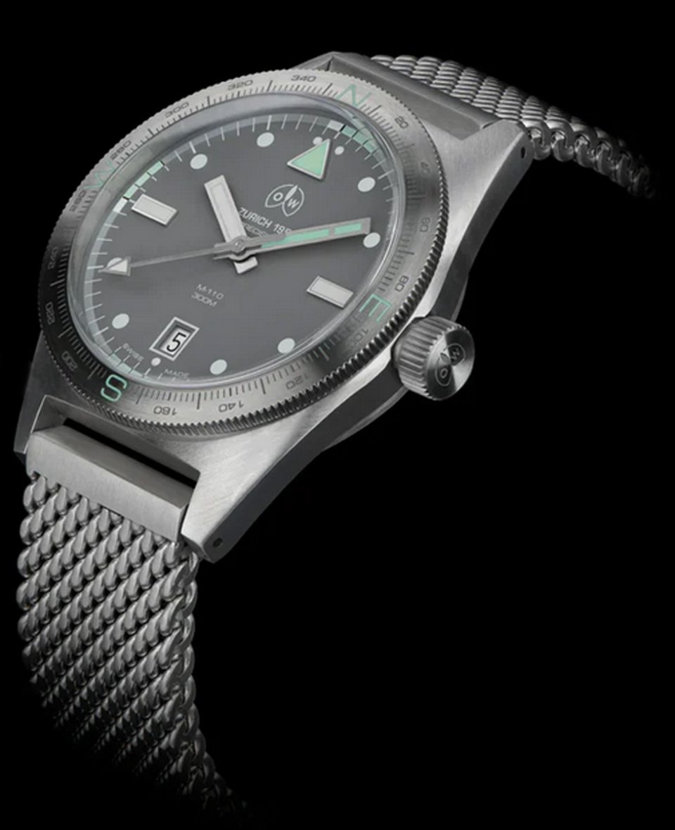 O & W M-110M:自動巻、サイズ39.5mm、300m防水、メタルメッシュブレスレット仕様、販売価格31万9000円。