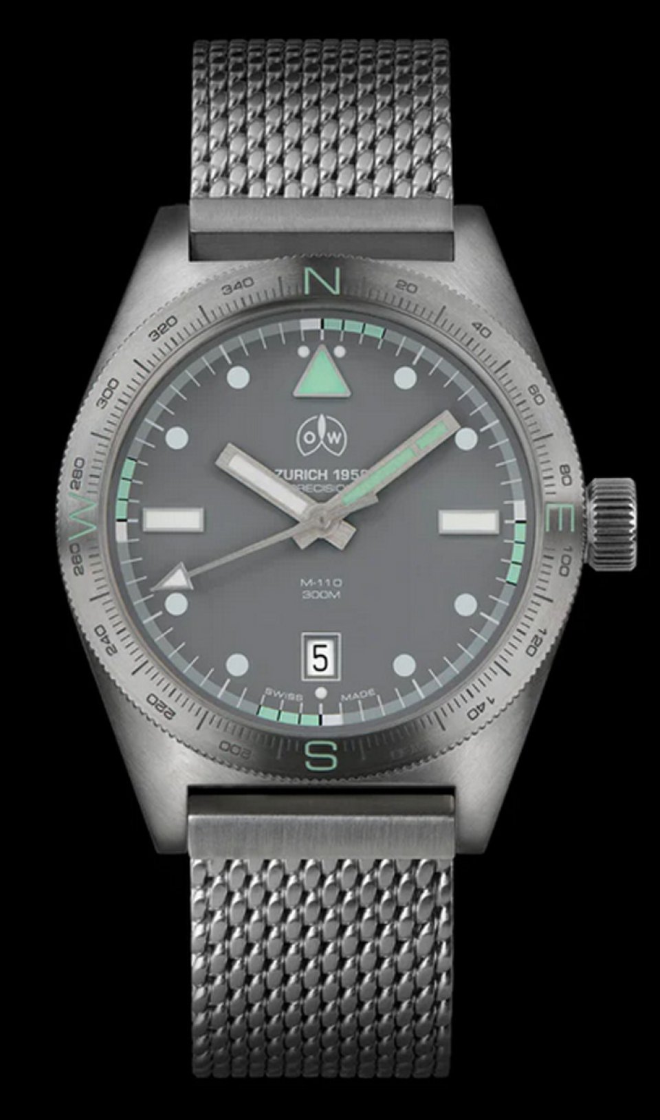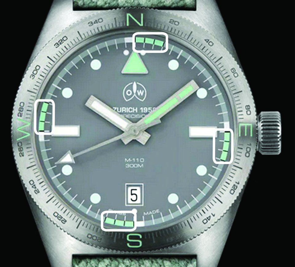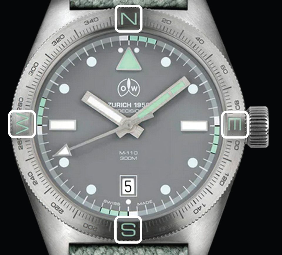 オレッヒ&ワイスの新作「M-110」は、60年以上にわたるミリタリーとダイビングの専門知識を活かしたタクティカルツールウォッチです。ベゼルには東西南北を示す方位マーカーと360度コンパスの刻印があります。