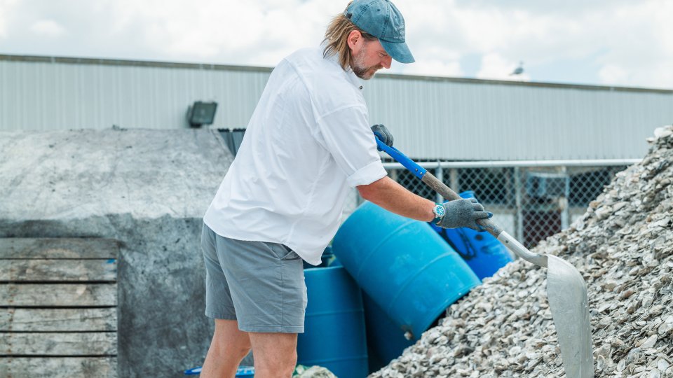 地元のレストランから回収された約1,300トンを超えるオイスターの殻は再利用されている