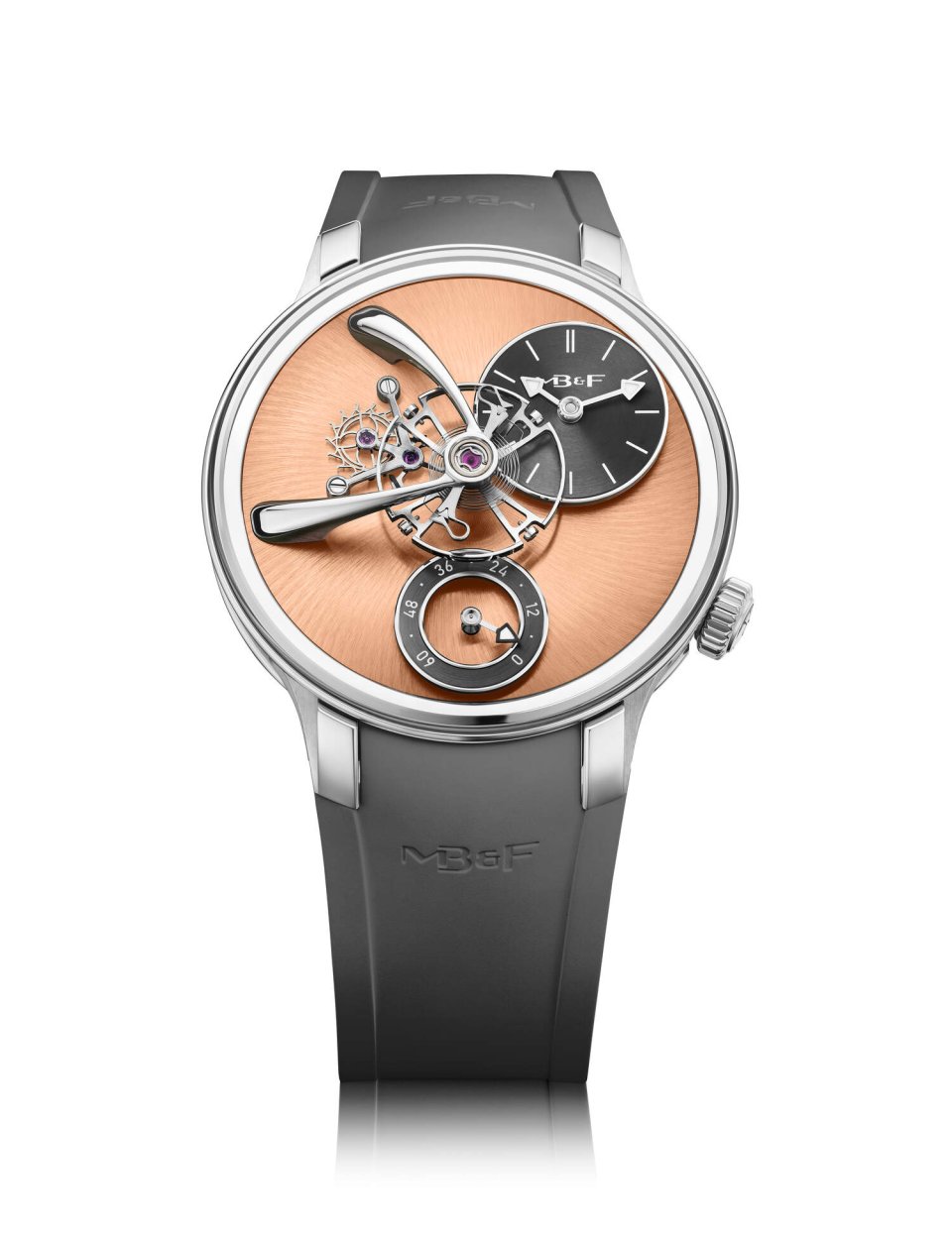 2005年に設立されたMB&Fは、世界初の時計製作専門コンセプトラボとして傑出した創造性を誇ります。ブランドはこれまでに20種類以上の秀逸なキャリバーを開発し、それらをベースにして製作されたオロロジカル・マシンとレガシー・マシンは高い評価を得てきました。そして現在も、創業者でありクリエイティブディレクターでもあるマキシミリアン・ブッサーのビジョンに基づき、従来の時計作りの殻を破ってキネティックアートを思わせる立体感豊かな作品を生み出し続けています。