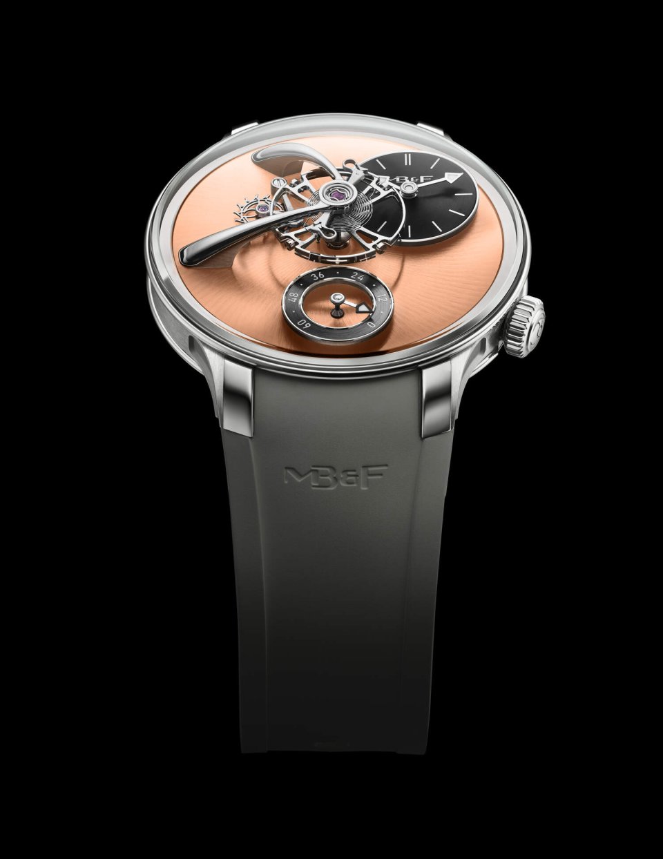 2011年には、MB&Fはラウンドケースのレガシー・マシン コレクションを発表。MB&Fとしてはクラシカルなスタイルを採用したこれらのモデルは、19世紀の腕時計製造の卓越性に敬意を払いながら、往年の偉大な時計製造革新者とは異なる視点で複雑機構を解釈することにより、現代的な芸術品に仕上がっています。また、一部のレガシー・マシンには、コレクターのアクティブなライフスタイルに合わせて防水性と耐衝撃性を高めたEVO(エヴォ)エディションも誕生しました。MB&Fは現代的で型破りなオロロジカル・マシンと、歴史からインスピレーションを得たレガシー・マシンを交互に発表しています。