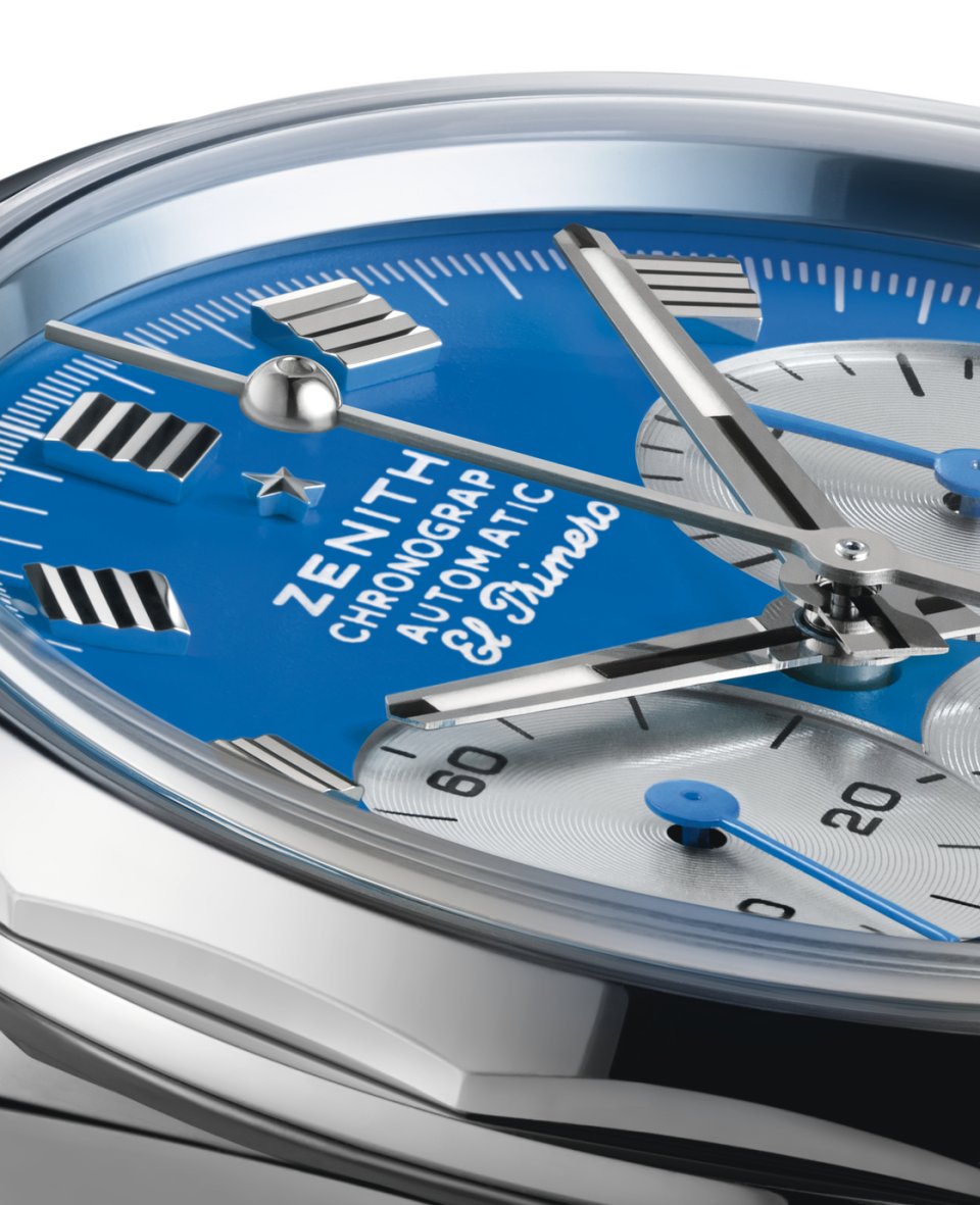 控えめながら遊び心の光るディテールとして、暗い場所でも視認性を確保するようスーパールミノバを塗布したクロノグラフ秒針の先端に、USMハラーのボールジョイントのミニチュアがあしらわれています。クロノグラフを起動するとボールジョイントの真下に配されていたゼニススターが現れ、このタイムピースに緻密に織り込まれたストーリーが語られます。4色のバリエーションはそれぞれ60本限定のリミテッド エディションです。