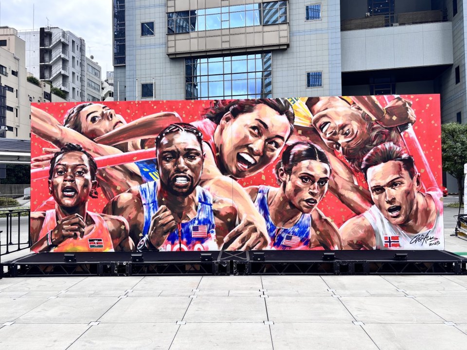 赤坂サカス広場にて展示中の「東京2025世界陸上」アート ©TBSテレビ