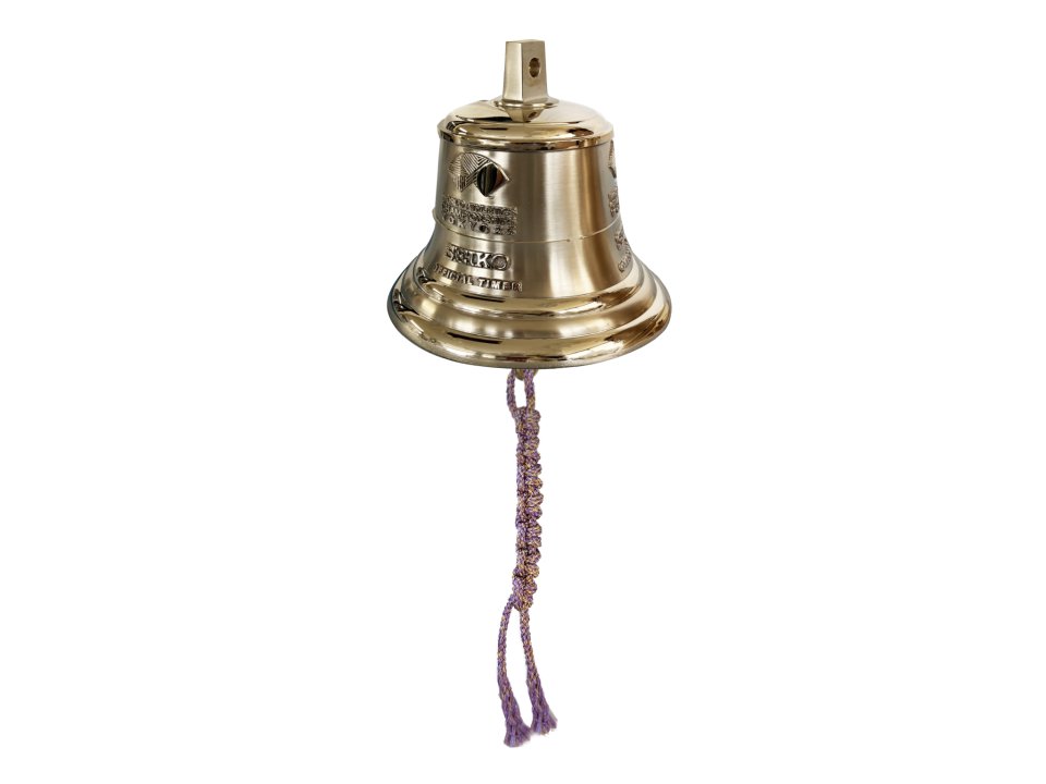 その一打が、最後の勝負の幕開けを告げる合図となります。鐘の本体は、梵鐘(お寺の鐘)などを手がける鋳造メーカーとして国内最大手である富山県高岡市の「老子製作所」が、青銅で丁寧に鋳造。重厚な佇まいと澄んだ音色を兼ね備えています。鐘を鳴らすための紐には、創業100年以上の歴史を持ち、東京都で江戸組紐の伝統を継承する「龍工房」の組紐を使用。大会カラーの江戸紫に金銀の糸を織り交ぜた意匠が、緊張感の中に華やかさを添えます。日本の職人技と美意識を結集したこのラップベルは、競技場で実際に使用されるほか、セイコーハウス6階の企画展でも展示予定です。日本のものづくりの魂が競技の熱気に特別な輝きをもたらします。