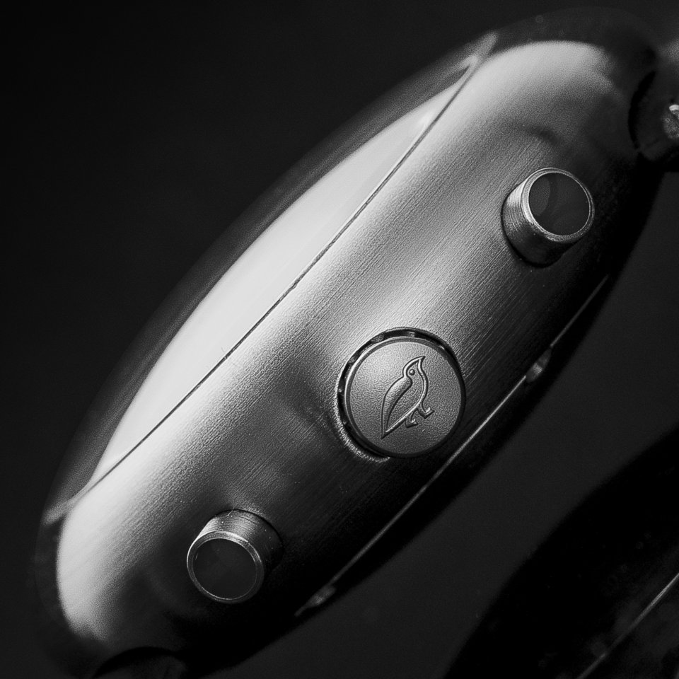 流線形の特徴的なケースデザイン、リューズには絶滅したとされている幻の鳥「HEMIPOD」を刻印、名作「HEMIPOD」へのオマージュを捧げたデザインです。
