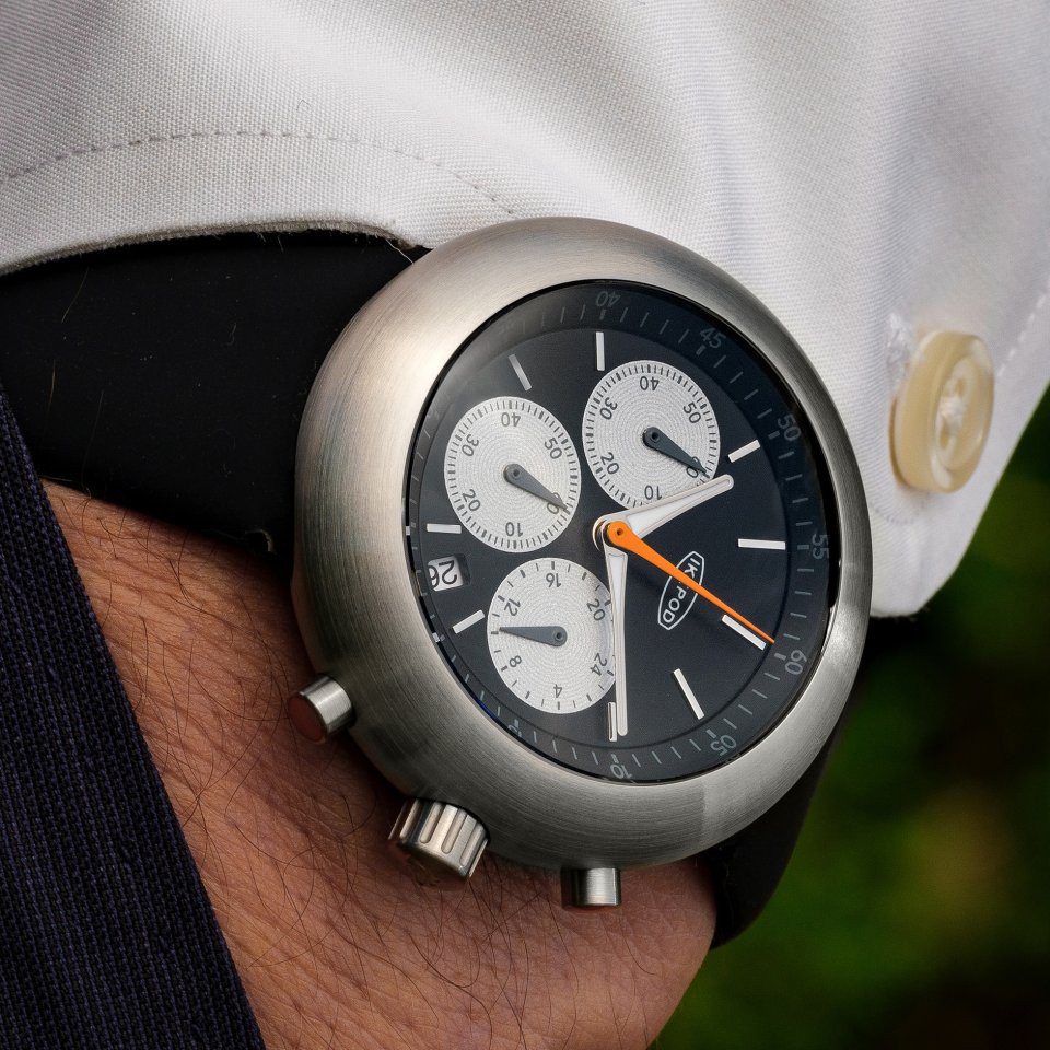 マーク・ニューソンがデザインしたアイコンウォッチ「Hemipod(ヘミポッド)」の特徴的な流線形のケースデザインを継承、オーデマ・ピゲのロイヤルオークオフショアのデザイナー、エマニュエル・ギョエによって再考されたデザインの文字盤を合わせ、クロノグラフモデル「CHRONOPOD」、シンプルな2針のDUOPODが発売されブランド復活の一役を担いました。