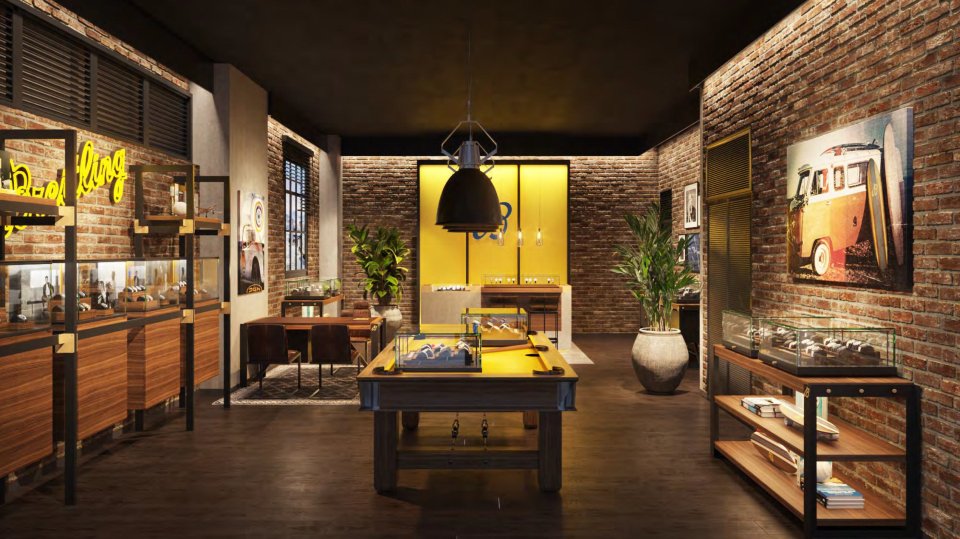 店内は、世界共通のインダストリアル・コンセプトを採用したワンフロア構成。最新の什器がゆとりある空間に配され、日本限定モデルや希少なタイムピースを含むフルコレクションをご覧いただけます。