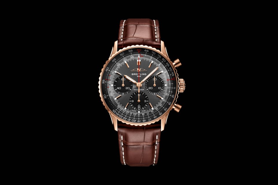 ナビタイマーは、誕生70周年を記念し新たに生まれ変わりました。遠くから見ても一目でナビタイマーとわかるアイコニックなデザインは継承しながら、現代的な洗練を加えた新コレクション。オリジナルに採用されていたAOPA(国際オーナーパイロット協会)の翼のロゴがかつての12時位置に戻り、平らにした回転計算尺とドーム型クリスタルにより、従来よりもスリムな外観を実現しました。