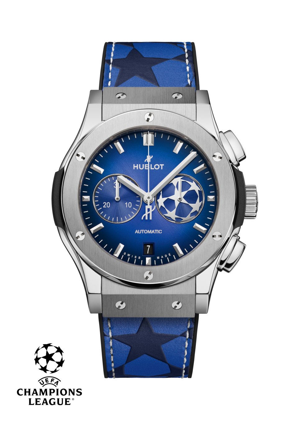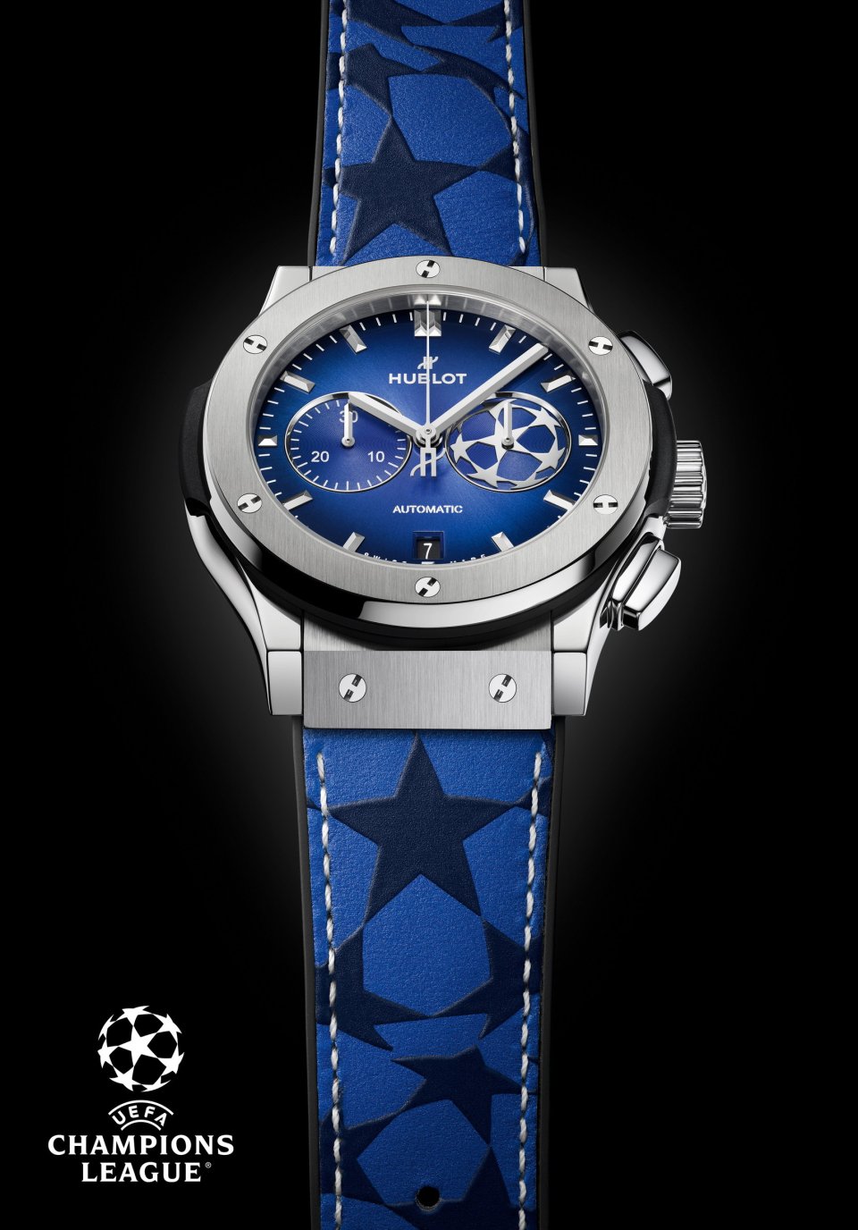 サッカーにおいては、タイミングが全てです。2015年から、ウブロはUEFAチャンピ オンズリーグのオフィシャルウォッチとして、1秒ごと、また1ゴールごとに、栄光の瞬間を計測してきました。忘れがたいこの10年を記念して、ウブロは「クラシック・フュージョン クロノグラフ UEFAチャンピオンズリーグ チタニウム」を発表します。2025/26シーズンをスタイリッシュにスタートさせる、世界限定100本の特別なタイムピースです。UEFAチャンピオンズリーグの象徴であるブルーを身にまとい、チャンピオンのスピリットを宿しています。