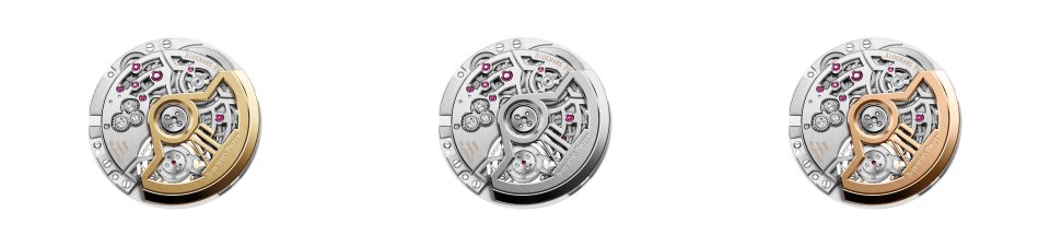 ケースバックから見たキャリバー2968。それぞれケースと同じ22Kゴールド製のローターを採用。