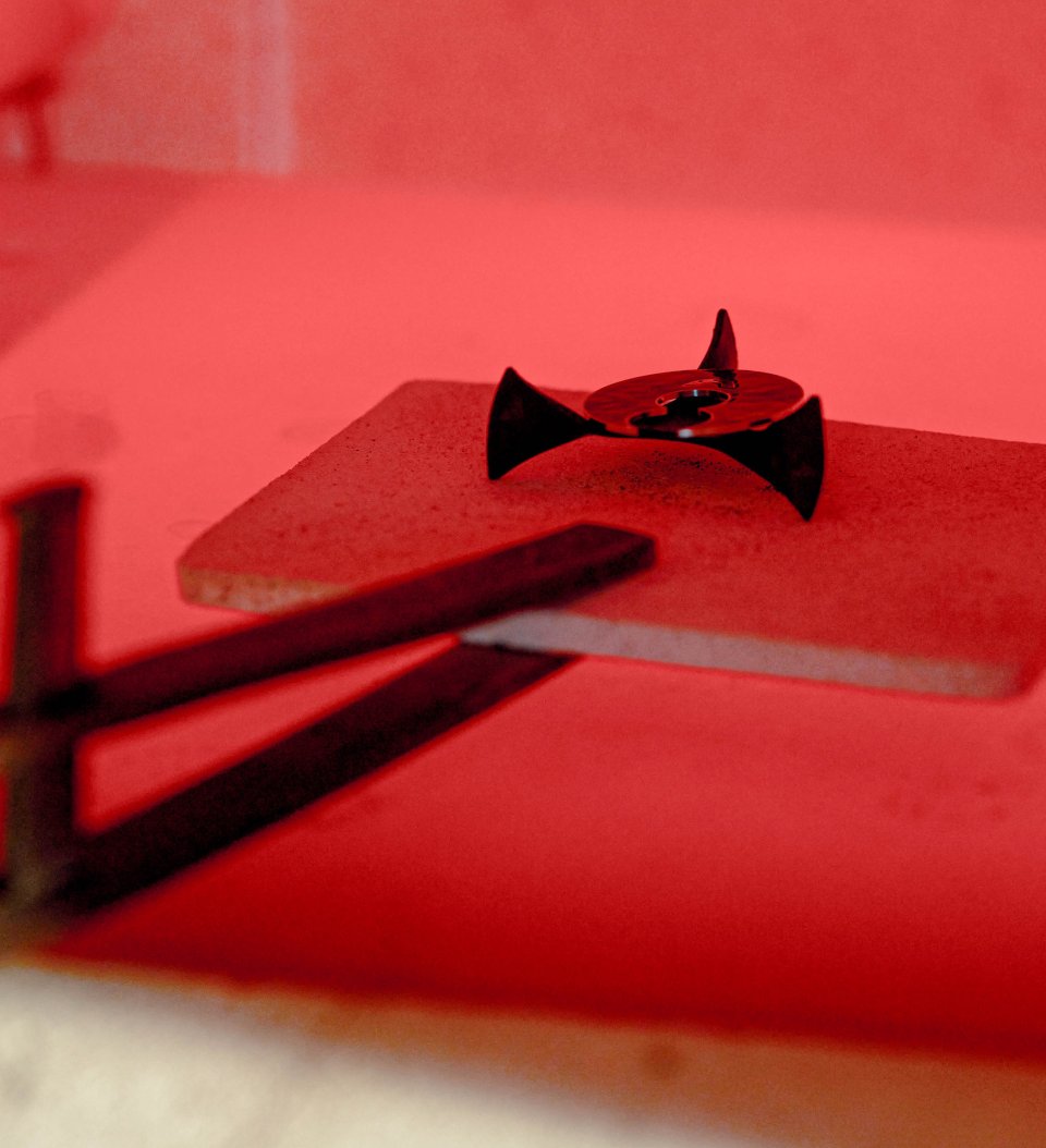 窯の中でのあらゆる工程には、気泡やひび割れなどの欠陥が生じるリスクがあり、しばしば工程のやり直しが必要になります。これは忍耐、正確さ、そして卓越した技術力を必要とする厳しい鍛錬であり、エナメルはオート・オルロジュリーにおいて最も習得の難しい素材のひとつとなっています。フリークX グレー エナメルの回転ディスクは、1枚1枚順番に製作され、各ディスクの完成には少なくとも丸1日、およそ8時間から12時間を要します。