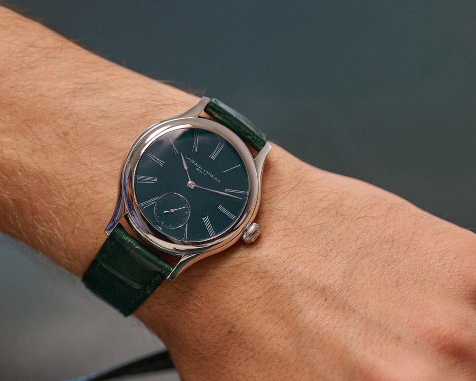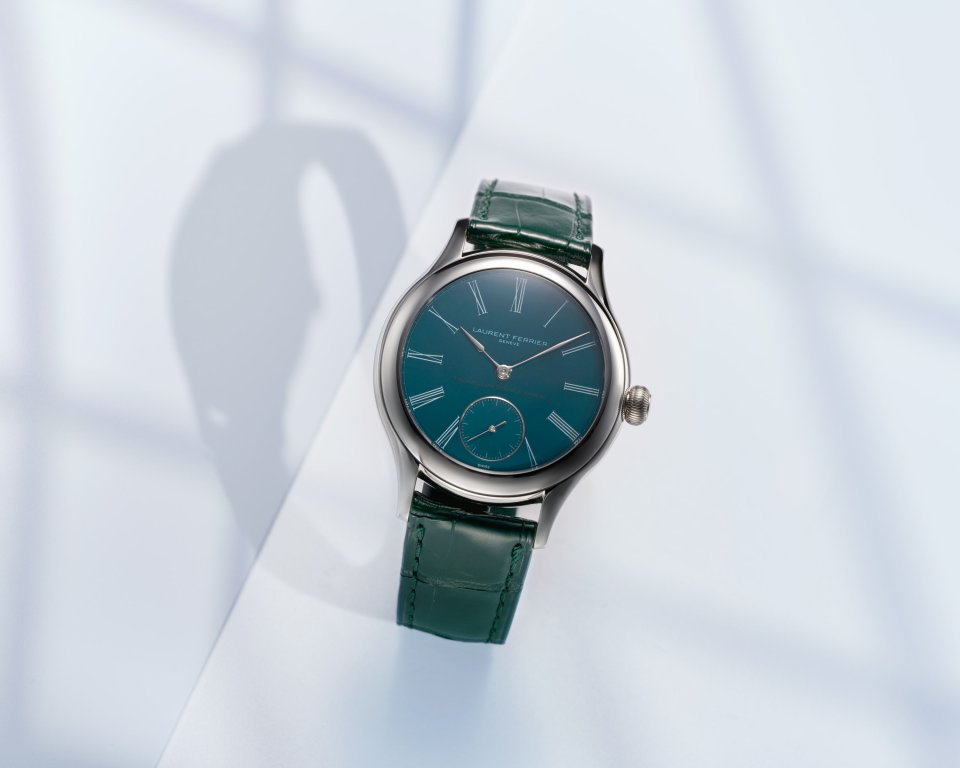 ローラン・フェリエが重要視する視認性を高めるため、アワーサークルのローマ数字は明るいホワイトエナメルで丁寧に縁取られています。時分針にはアセガイ型、秒針にはバトン型のゴールドの針が採用されています。オリジナルの美学を忠実に再解釈し、そこに新たな活気を吹き込んでいます。