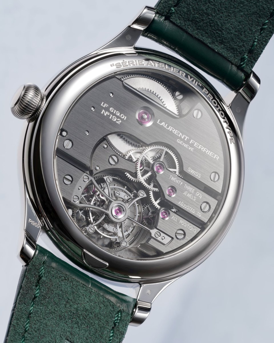 2010 年、ローラン・フェリエは初のモデル「クラシック トゥールビヨン」でGPHG(ジュネーブ・ウォッチ・グランプリ)のメンズウォッチ賞を受賞し、独立時計師としての輝かしいキャリアをスタートさせました。この時計には、ダブルバランススプリングのトゥールビヨンを備えた、独創的な手巻きムーブメントが搭載されていました。このムーブメントのトゥールビヨンは、単なる視覚的な演出ではなく、計時において高精度を確保するという本来の目的をさりげなく果たしています。新しい「クラシック・トゥールビヨン ティール セリエ アトリエ VII」も、同じLF619.01 キャリバーを搭載していますが、より現代的な仕上げを施しています。