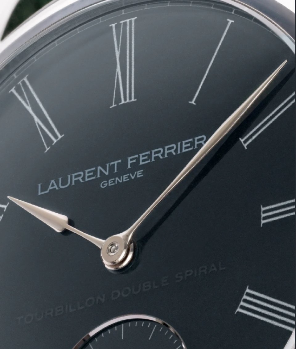 このブリッジには、水平方向のサテン仕上げ、面取り、フロスト加工、ネジのブラックポリッシュといったさまざまな伝統的な仕上げ技術も見て取れます。これらのディテールは、ローラン・フェリエの時代を超越した高級時計の職人技に対する揺るぎない敬意を体現しています。