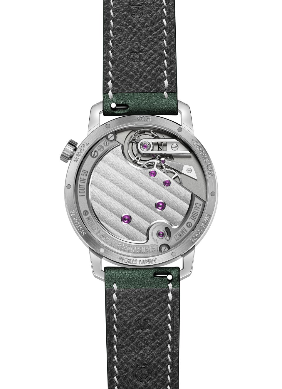 アーミン・シュトロームの理念に則り、トリビュート1グリーンはすべて2度組み立てられます。まず精度を確保するために、そして仕上げの装飾を施した後に再度組み上げることで、性能と美観の両立を最高水準で保証します。