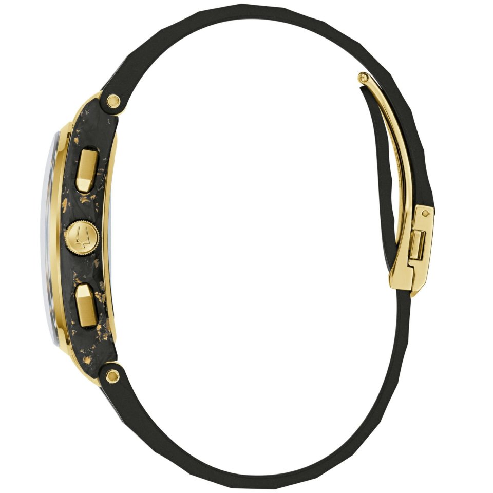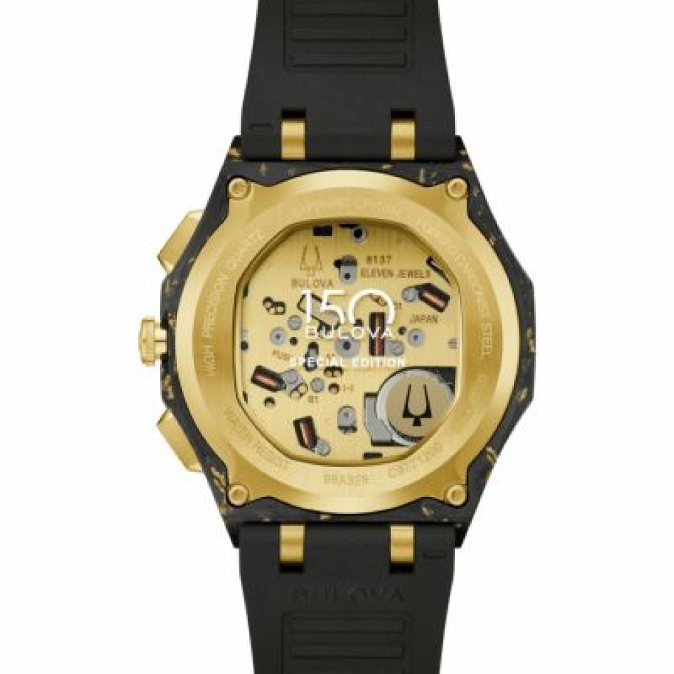 From : BULOVA (ブローバ)150 周年記念モデル、ブローバ <カーブ>~ケース素材に金箔入りフォージドカーボンを初使用した新モデルが10 月3 日発売予定