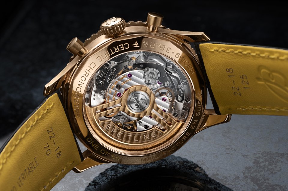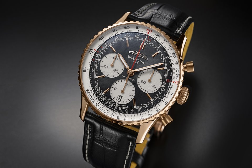 From : BREITLING (ブライトリング )ブライトリング、ブラックのマザーオブパール文字盤を採用したゴールドケースの日本限定ナビタイマーを発表