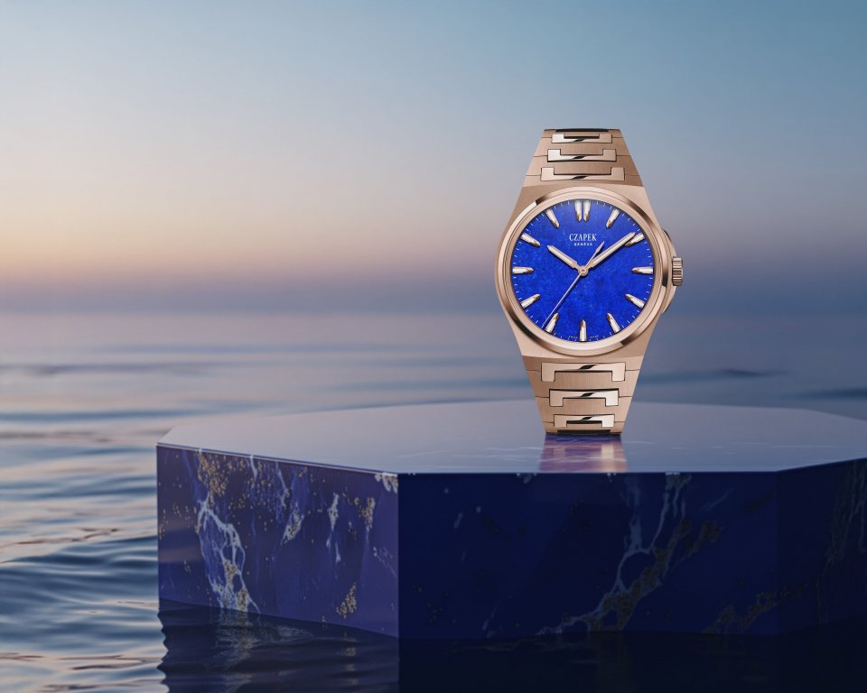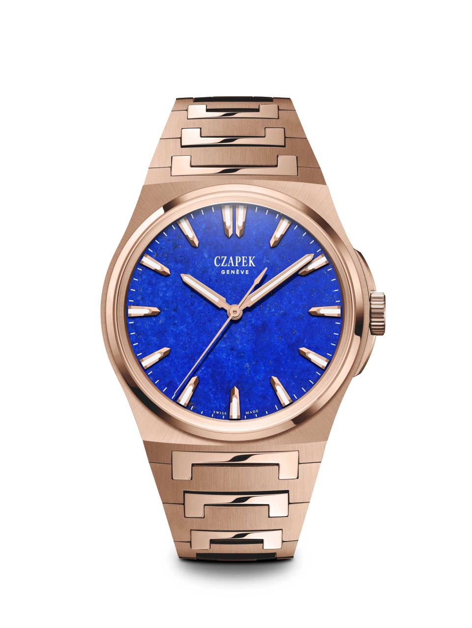 新作のひとつは、ラピスラズリを文字盤に用いたローズゴールド仕様の「マウント・エレバス ラピスラズリ」。
