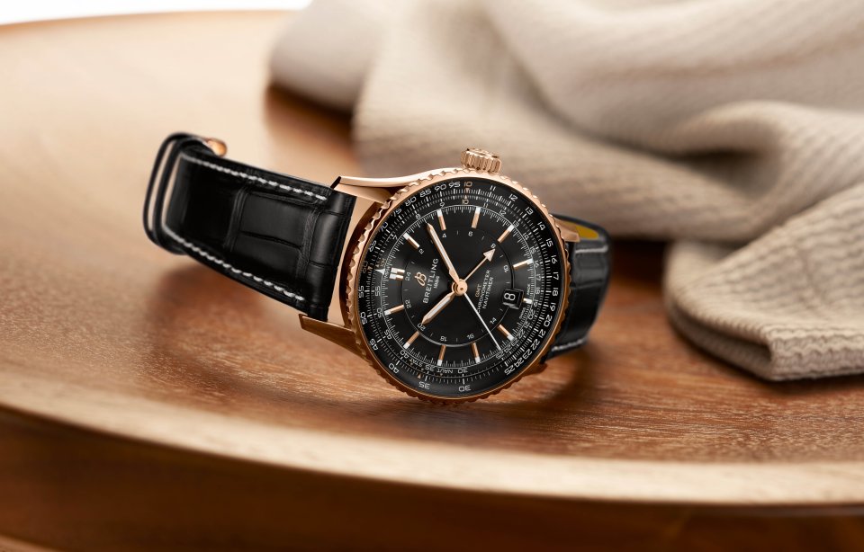 From : BREITLING (ブライトリング )ブライトリング、ブラックとゴールドが魅せるナビタイマー GMT 日本限定モデルが登場